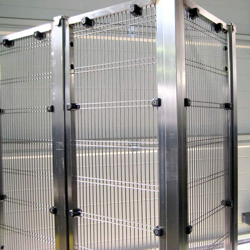 Les cloisons grillagées sont soumises à une large batterie de tests. Parmi eux, nous retrouvons le test du pendule utilisé pour tester la résistance des protecteurs aux impacts.