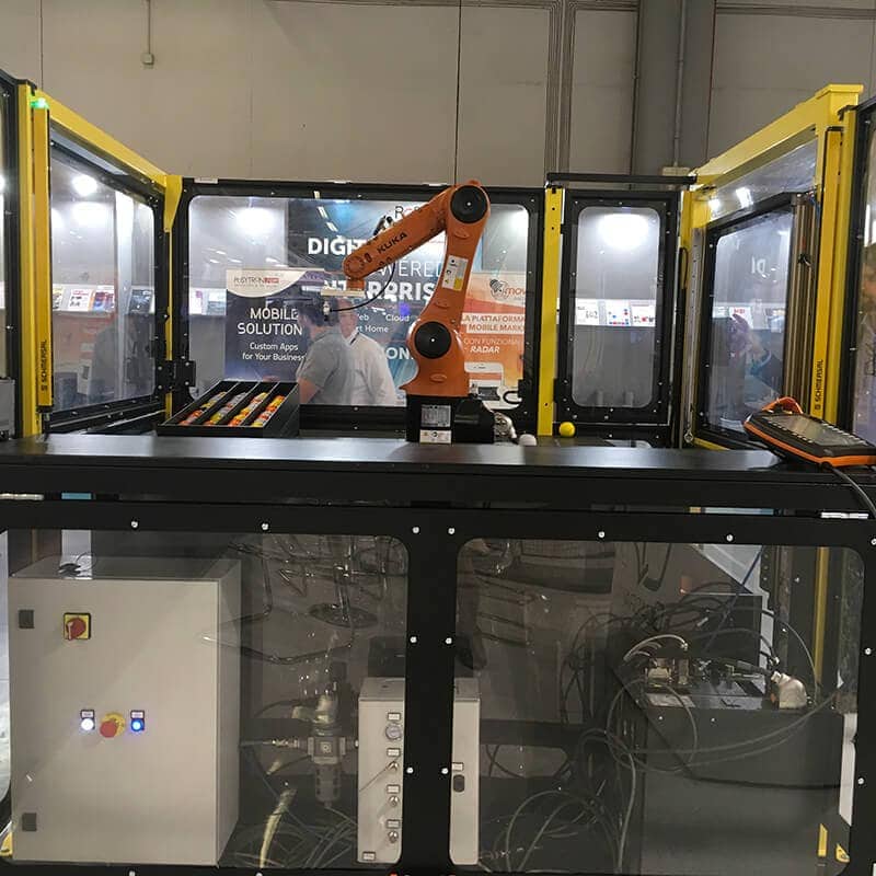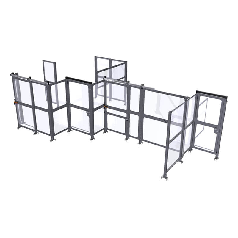 Clôtures modulaires de protection parfaites pour protéger un espace de travail robotisé, une zone où le mouvement des machines est potentiellement dangereux, un espace d’entreposage à l’accès restreint ou une passerelle située en hauteur. Grande flexibilité et 100 % conforme aux normes ISO et CE.