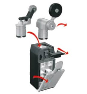 The operating head can be fully adjusted in 360°, in 15° increments. This wide adjustment range allows precise actuation angle optimization and ensures reliable detection.
