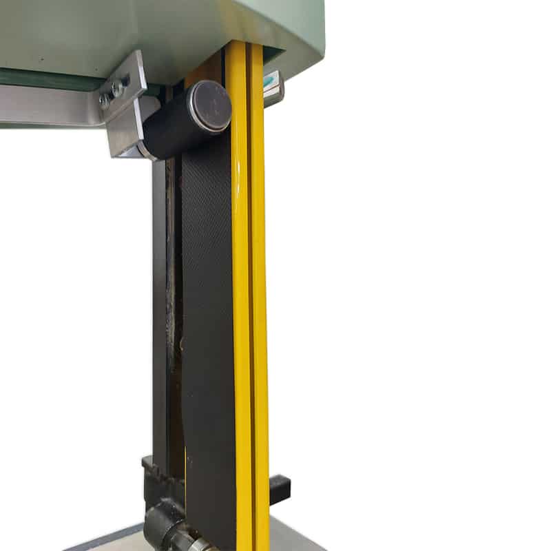 The MST-AT01/BLADECOVER is installed in minutes to a vertical band saw’s blade guide. Made from a single unit fixed to the upper and lower parts of the existing band saw guide, it deploys a retractable curtain that shields the operator from moving parts and prevents clothing entanglement. The self-sliding roll, powered by multiple internal springs, ensures smooth and reliable operation. With its 50 mm (2″) width and 400 mm (16″) travel, it adapts perfectly to frequent tool or blade changes. The protective ribbon is made of spread textile material engineered to resist coolants and industrial abrasion.