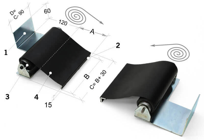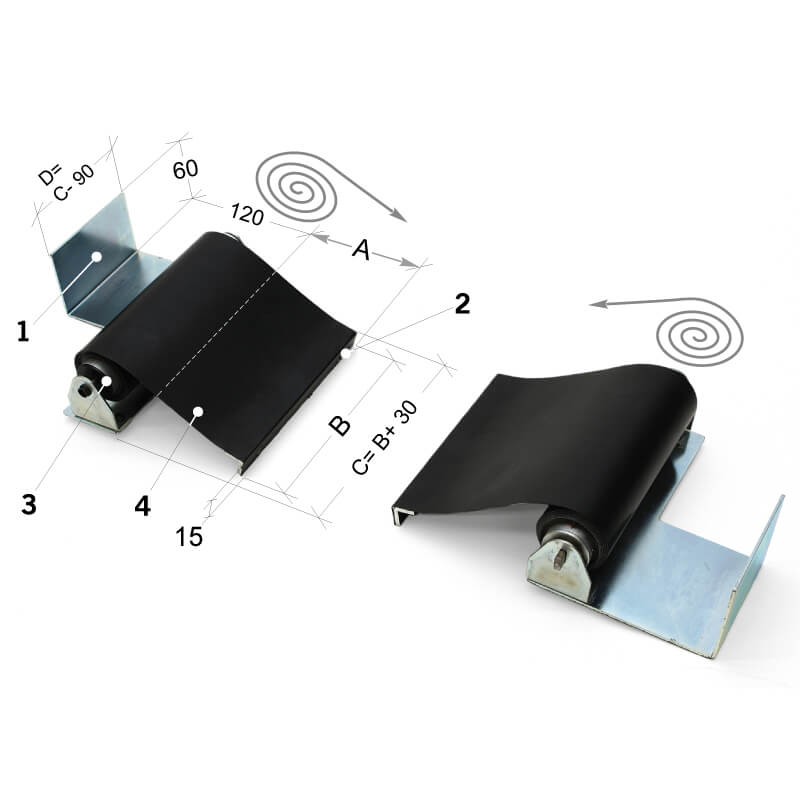 Cada unidad se fija en los extremos del carro longitudinal. Durante el movimiento, las cortinas se enrollan y desenrollan automáticamente mediante un sistema de resortes múltiples, garantizando una protección continua y sin intervención manual.