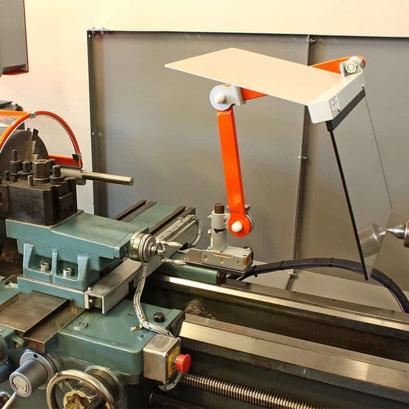 Diseñado para maximizar la seguridad del operador, el protector MST-TO10/11 se instala detrás del carro longitudinal del torno, sostenido por un brazo articulado resistente, fijado a un punto de anclaje totalmente ajustable en varios ejes. Otros accesorios disponibles.