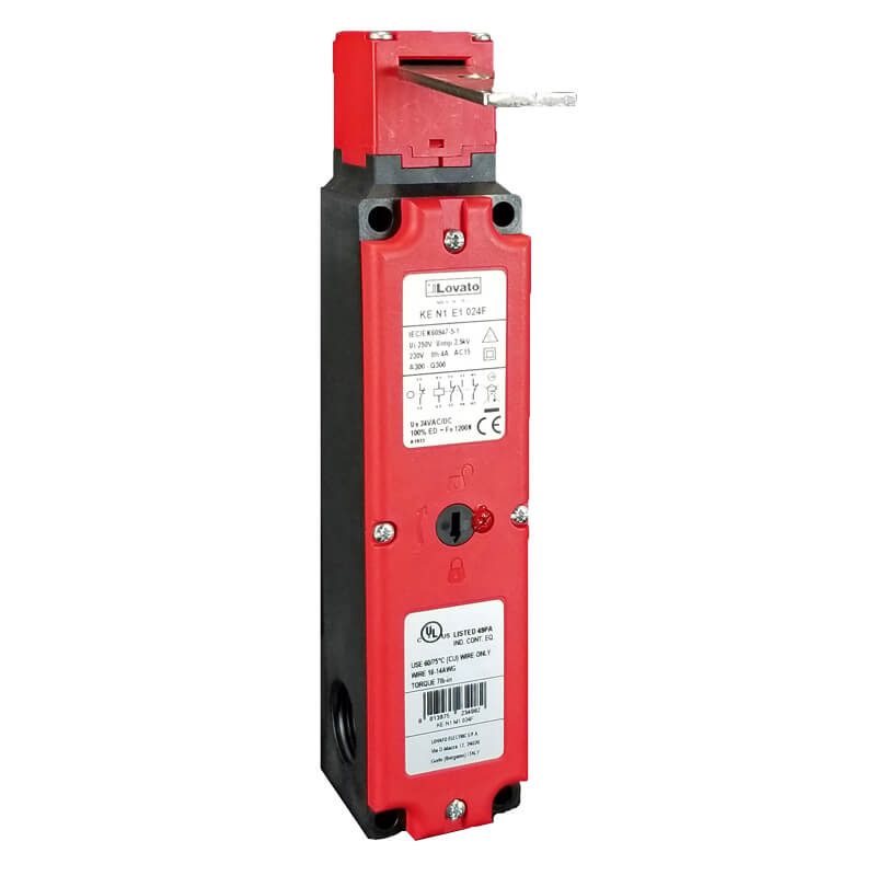 Les interrupteurs de sécurité avec solénoïde évitent l'accès dans les zones dangereuses jusqu'à la réception d'un signal approprié: la clé de l'actionneur peut être verrouillée ou libérée via un solénoïde en fonction de son état d'alimentation (actionneur verrouillé avec solénoïde sous tension pour MSL-KEN1E1024F / actionneur verrouillé avec hors tension solénoïde pour MSL-KEN1M1024F). Les contacts sont actionnés séparément par actionneur à clé ou par solénoïde et permettent de couvrir les principaux besoins communs des installations.