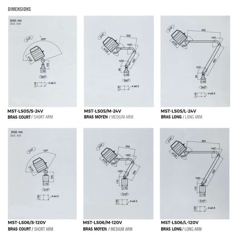 | MST-LS06/S-120V | Petite lampe industrielle LED 120V avec bras court | 120V | Bras court 65 mm (2 9/16") |