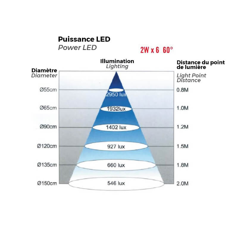 - La puissance de chaque ampoule est de 2W x 6pcs