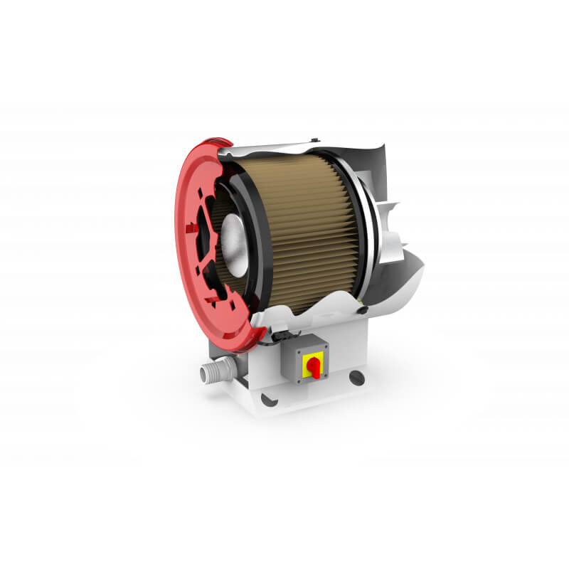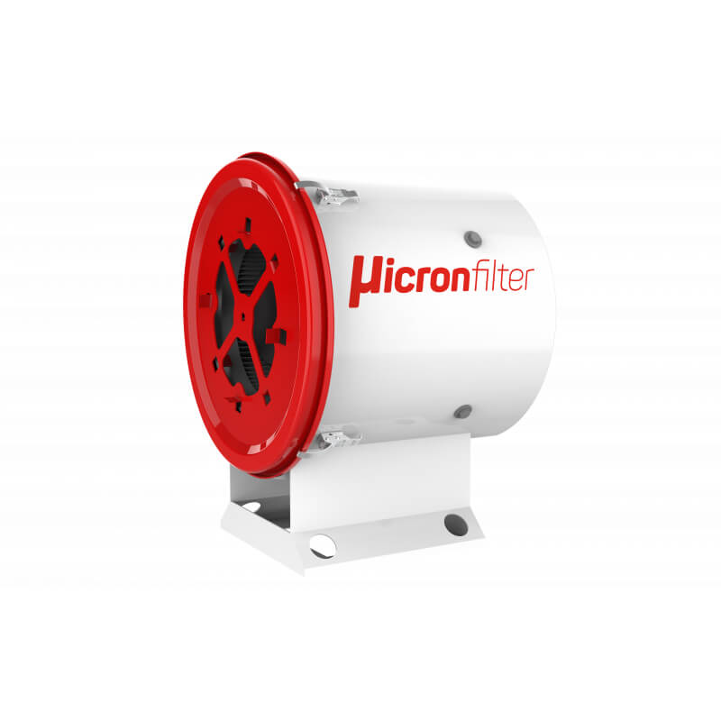 L’air entre dans le corps du dépurateur Microil à une vitesse élevée grâce à la puissante turbine. La roue de la turbine a été spécialement conçue et équilibrée afin qu’aucune vibration ne soit créée. L’air passe ensuite à la seconde étape de filtration, qui est composé par un préfiltre remplaçable, de type coalescent, et une grande cartouche filtrante de cellulose plissée. La combinaison de l’effet dynamique de la turbine et de la filtration statique assure un niveau très élevé de performance, égale à 98% d’efficacité.