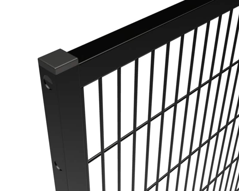 Chaque panneau est muni d’un perçage standard permettant la fixation de vis de renforcement imperdables et d’accessoires, facilitant l’intégration au système modulaire de clôtures PRISMONT. Les cadres sont conçus avec un châssis de 20 mm (25/32"), assurant une excellente stabilité structurelle et une installation fiable dans les environnements industriels.